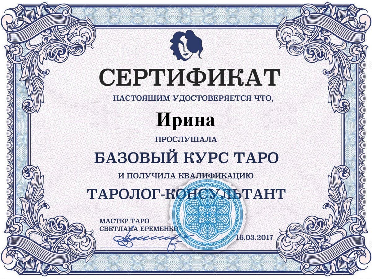 Ирина поможет решить проблему любой сложности и найти выход даже из самой запутанной ситуации. Самое главное – нужно поверить в силу этой удивительной предсказательницы, и вовремя обратиться к ней за помощью!